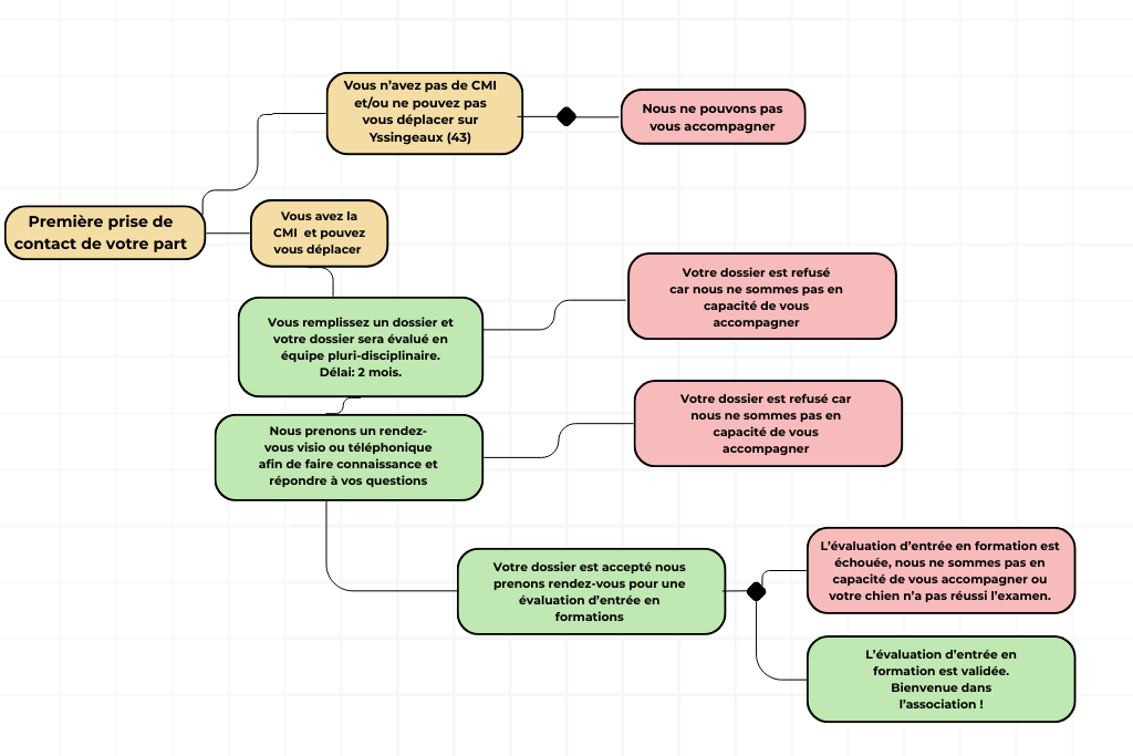 Cette rencontre permet d’évaluer le lien humain/chien, la faisabilité du projet, et les conditions de formation.