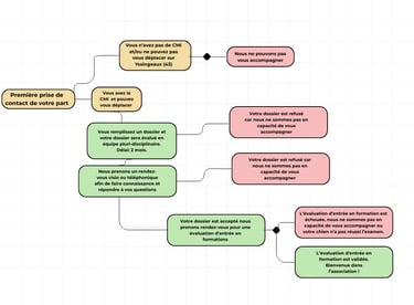 Après une prise de contact de votre part, notre équipe vous enverra par email un dossier à remplir. Compris dans le dossier, il y aura un dossier médical à faire remplir par votre médecin, ainsi qu'un dossier à remplir vous-mêmes sur vos besoins d'accompagnement.